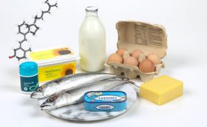 También la podemos obtener por la ingesta de algunos alimentos, pero es una vitamina muy escasa en la mayoría de los que se consumen habitualmente. Solo está presente en cantidades significativas en el pescado azul y algunos aceites de pescado, el hígado y la grasa de mamíferos marinos, la yema de huevo y productos fortificados (cereales, algunas marcas de leche, jugo etc.)