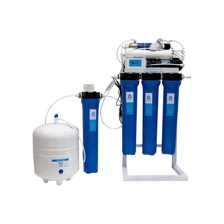 Por último, el agua pasa a través de una lámpara de luz ultra violeta que se encarga de eliminar los virus y bacterias en un 99%. Posteriormente el agua se almacena en reservorio (tanque) de 3.2 galones (de aproximadamente 12 litros) El reservorio es un presurizador del agua ya tratada.