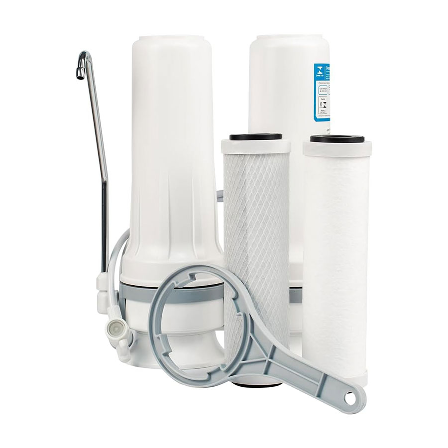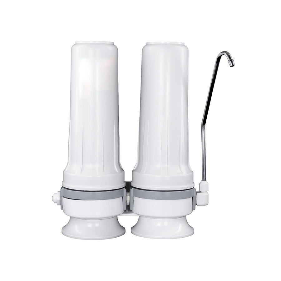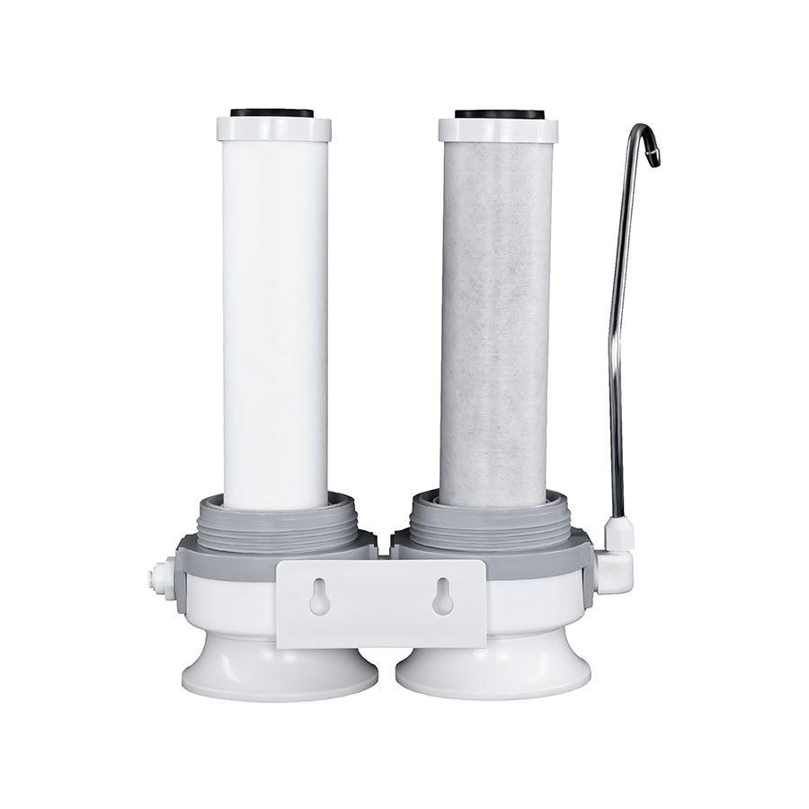 El Purificador Doble AS2 es un modelo portátil y fácil de instalar. No utiliza electricidad y puede ser montado en la pared o colocarse bajo el mostrador del lavabo o sobre la mesada en la cocina. El Purificador Doble AS2, tiene dos elementos de filtrantes. El primero de Polipropileno, no tóxico, reduce la suciedad procedente de la tubería como arena, arcilla y el óxido. El segundo, producido con Carbón Activado comprimido, tiene una máxima eficiencia en la reducción del cloro, así como el sabor y el olor desagradable del agua! Los elementos filtrantes son desechables y no requieren lavado a contracorriente.